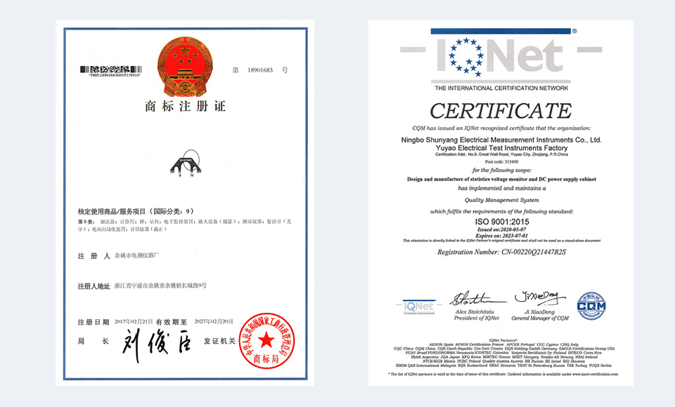 “舜陽(yáng)”商標(biāo),寓意在水鄉(xiāng)江南,一輪紅日正冉冉升起,象征著東方水鄉(xiāng)古城充滿(mǎn)了生機(jī)、活力和希望。是本企業(yè)經(jīng)國(guó)家工商行政管理總局商標(biāo)局批準(zhǔn)的注冊(cè)商標(biāo),注冊(cè)證第870847號(hào)、第18901683號(hào)。企業(yè)自1994年建廠(chǎng),長(zhǎng)期以來(lái),以其實(shí)實(shí)在在的產(chǎn)品和踏實(shí)認(rèn)真的服務(wù)贏(yíng)得了廣大電力用戶(hù)的信任。迄今,舜陽(yáng)牌DT系列統(tǒng)計(jì)式電壓監(jiān)測(cè)儀已在全國(guó)各地電力系統(tǒng)廣泛應(yīng)用。“舜陽(yáng)”人堅(jiān)持“工作精益求精,經(jīng)營(yíng)守法誠(chéng)信,技術(shù)不斷創(chuàng)新,服務(wù)以心換心,寧波舜陽(yáng)電測(cè),肩擔(dān)社會(huì)責(zé)任”的經(jīng)營(yíng)理念,始終把公司品牌與產(chǎn)品質(zhì)量視為企業(yè)生存和發(fā)展的生命線(xiàn)。